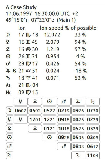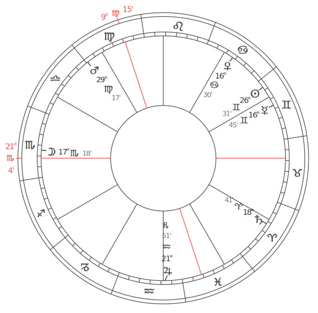 Ein Beispieldiagramm, das die hermetische Astrologie in all ihren Facetten zeigt.
